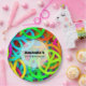 Peace Sign Pattern Groovy Sixties Vibe Birthday Paper Plate