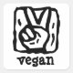 Peace begins on your plate! Doodle style image of a hand making the well known symbol for peace, which happens to also be a V for vegan.