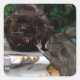 housemouse tries to calm down an angry black cat