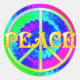 These groovy stickers have a psychedelic rainbow tie-dye background with a pastel peace sign and the word "Peace" in gold letters.