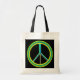 This tote bag features the circular pattern of the international peace symbol. The colours of blue, green and yellow on a black background create a dramatic geometric abstract pattern.
