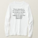 I love this shirt. I had written to the artist asking her if this picture was available on a shirt, and she wrote me back telling me where I could find the shirt. These shirts can be custom made to have a different saying. I loved this saying and went with it. The artist wrote me back later to tell me that she had seen my order go through. How's that for service? Pretty special. It's just as displayed. Perfect!