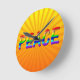 The clock did not take as long to arrive as I thought it might and was extremely well packaged. I didn't do the measurements so I didn't realize it is a little smaller than the average clock but that does not matter (just make sure you check if that's important to you).It is really nifty! It seems very solid and well made not flimsy at all. It has been going well and has kept good time in its few weeks on my wall. Nice product. Gets noticed too! Nicer in real life than the picture but true to the picture