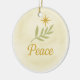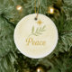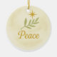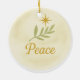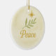 A simple olive branch and star in watercolor sage and gold surround the word Peace in golden calligraphy. A timeless symbol of calm and goodwill, perfect for a faith-filled tree.