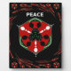 Make a bold statement in your space with our striking "Peace: with Shield Emblem" Art Print. This dynamic design prominently features the word 'PEACE' above a stylised shield emblem, rendered in powerful red, white, and black. The artwork is beautifully surrounded by a vibrant border of swirling red and green elements, inspired by the Kenyan national flag.