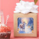 Decorate your holiday walls with this serene Akita Christmas scene. Soft snow, glowing lanterns, and rich painterly details create a peaceful winter moment perfect for dog lovers and seasonal décor.