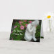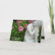 Greeting card with Image of a Buddha statue nestled amongst pink flowers and green foliage. Be Peace, Peace Be saying on front.