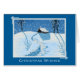 What could be more peaceful than soft snow falling in the countryside. Follow the path into the cabin for some holiday cheer. Created in the simple clean style of mid-century cards.