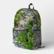 Peaceful forest image stone pathway dappled light printed backpack