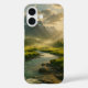 Protect your phone in style with this peaceful mountain river landscape nature iPhone case. Featuring lush green valleys, flowing water, and warm sunlight, this scenic phone case brings a calm and refreshing nature-inspired look to your everyday device.