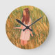 Wall Clock, 25.4 cm Round Black Wooden Frame