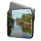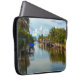 Stay cool with the calm, peaceful view on this 15” Laptop Sleeve. This original photograph by ZoeSPEAK is a long view of a canal in Estero Island, Florida. At the far end of the waterway, near the horizon, is the bridge to the mainland. The blue sky is filled with puffy white clouds, tropical trees and boats line the canal, and a reflection of the beautiful scene completes this picture of coastal living.