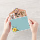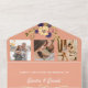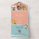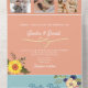 Presenting our elegant, modern, bohemian pastel blue and peach wedding all in one invitation, adorned with a chic romantic gold rope heart and delicate watercolor flowers, accompanied by cheerful sunflowers. With space for four custom pictures of the couple, this invitation captures the essence of your love story.