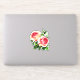 Sticker in two roses, in shades of pastel peach pink to deep coral pink, with jade green leaves