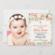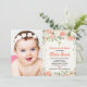 Peach and cream floral baptism girl photo invitation