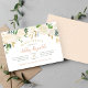 A warm, romantic take on the white rose and greenery wedding bridal shower invitation in a horizontal format. Gold text pairs beautifully with watercolor florals and lush eucalyptus leaves for an elegant garden aesthetic. The reverse features a soft peach polka dot pattern that adds a feminine finishing detail. All text and event details are easy to customise to suit your celebration.