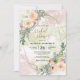 This is a beautiful wedding bridal shower invitation featuring peach and green with gold geometric frame design.