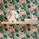 Bring the lush beauty of the tropics into your home with this vibrant wallpaper. Exotic flowers and foliage in a soothing palette of peach and green create a calming and elegant atmosphere. This peel and stick wallpaper is easy to apply and remove, making it perfect for adding a touch of paradise to any room.