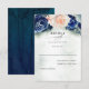 Navy blue and peach flowers wedding reply cards