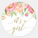 Peach and Pink Peony Flowers It's A Girl Favour Classic Round Sticker