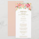 Peach and Pink Peony Flowers Wedding Menu Card