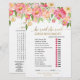 This peach and pink peony "he said she said" game is perfect for an elegant bridal shower. The front of the game card features "he said she said" which is a fun quiz about the bride and groom. The back of the card features a word find with wedding related words and phrases. The floral design features a beautiful arrangement of watercolor peonies in shades of blush and coral matched with dainty faux gold foil calligraphy. Personalise the game card with the brides name and bridal shower date.