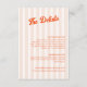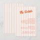 Introducing our exquisite peach and tangerine wedding details card, designed to add a touch of retro charm to your special day. The soft peach striped background is perfectly complemented by the vibrant tangerine classic calligraphy that adds a pop of colour and sophistication. The text is fully customisable.