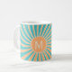 Peach and turquoise retro style sunburst design coffee mug