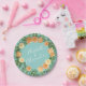 Peach & Aqua Peony & Rose Floral Wedding Paper Plate