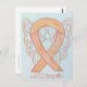 The guardian angel postcard art print features the picture of a peach awareness ribbon angel painting. Add your own optional words or message to the postcard for personalised angel art cards! You can also remove the text for an art only angel postcard print. The peach awareness angel ribbon painting postcards can be customised with personalised messages to make great awareness cause images or pictures for fundraisers, awareness gifts, or other special events. Give this angel art as an awareness ribbon gift for any occasion.