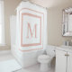 Peach Beige and white square border monogram Shower Curtain