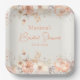 Peach Beige Floral on Ivory Bridal Shower Paper Plate