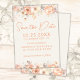 Peach beige flowers on Ivory save the date cards. Customise names, dates, and information.