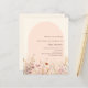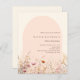 An elegant wildflower invitation. A cream, beige coloured background and a peach coloured arch. Decorated with watercolored wildflowers in beige, pink.