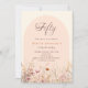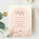 An elegant wildflower invitation. A cream, beige coloured background and a peach coloured arch. Decorated with watercolored wildflowers in beige, pink.