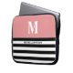 This peach black striped laptop case with a simple monogram design, this style is a lovely personalised gift choice for any lady like your friends, bride, bridesmaids, mother, mother-in-law, sister, sister-in-law or teachers.