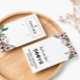Floral earring display card printed with your logo and hand-drawn peach flowers and greenery. Add your social media information to the back.