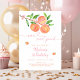 This adorable invitation features hand painted watercolor peaches, peach blossoms and vibrant leaves.