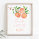 This adorable design features hand painted watercolor peaches, peach blossoms and vibrant leaves.