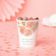 Beautiful watercolor double peach coloured flower ornamental blossom wedding paper cups. Personalise with your bride and groom's name and wedding date. Part of the peach blossom watercolor flower wedding collection. © Original watercolor hand painted art and design by Sarah Trett for www.mylittleedenweddings.com