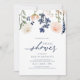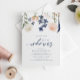 Bridal Shower Invitations with Peach and Blue Florals (Registry & Wedding Website on Back): These unique bridal shower invitations feature dusty peach and dark blue botanical leaves and flowers at the top. The back features a matching wreath, watercolor background, the couple's registry info, and wedding website.