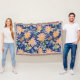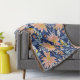 Peach blue folk floral throw blanket