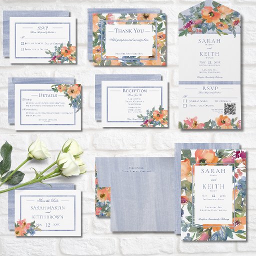 Peach & Blue Floral Frame Wedding Suite CardsDesigned by Kathe Santillo