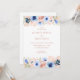 Modern wedding invitation floral & geometrical. In the colours Gold, Peach & Blue.