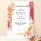 Peach Blush Floral, Burgundy Watercolor Wedding Invitation