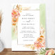 Delight your guest with this elegant and unique wedding invitation with exquisite watercolor floral elements in a beautiful blend of peach, orange, blush pink, dusty rose, champagne cream and coral hues with cascading green watercolor stain showcasing your wedding details. Ability to change "together with their parents" to "together with their families", "together with great joy" or "together with great pleasure". Ability to edit design using the design tool, by using button at the end of template text boxes and make text position, font style or size changes. Back with cascading green watercolor stain. NOTE: IF YOU PREFER THIS INVITATION WITH THE BACK IN WHITE, you can make this change by following these easy steps: click on the blue "Edit Using Design Tool" button located at the end of template text boxes. Then on the "back" layer, add from "elements" on menu to the left, a square. Drag the square corners with your mouse and make it really big covering the entire back. Then change the square's colour to white in menu to the right. Finally click on "done" button on top corner. This will make your invitation's back white. Stylish and elegant design with delicate flowers and pampas grass details. Part of our "Peach Floral Delight and Green Collection" with a variety of coordinating products available. Visit the entire extent of this collection at: https://www.zazzle.com/collections/peach_floral_delight_and_green-119552409662994360https://www.zazzle.com/collections/peach_floral_delight_and_green-119552409662994360