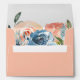 Peach and slate blue watercolor botanical floral lined envelope with return address on back flap. Customise text, font style, colour and size. Envelope colour, shown in trendy peach, can be customised.