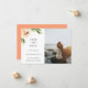 Elegant peach watercolor floral and green botanical foliage, Photo Wedding Save the Date Card. Designed to match our Chic Peach Botanical Collection. Backing colour, shown in trendy cantaloupe, can be customised.