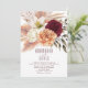 Celebrate your love with modern boho flair through our elegant wedding invitation. In shades of peach, burgundy, and terracotta, it features charming watercolor flowers and whimsical pampas grass. This invitation exudes contemporary elegance, blending timeless romance with modern style. Welcome your guests to a celebration where every detail reflects the beauty of your love story and the allure of nature's charm.