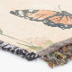A quality printed throw has its advantages. This is a much finer weave throw than its loopier cousins, and though lighter, it is worth the investment for custom room accessorizing. The back is much prettier than the typical brown, and the fringe on the long sides very vivid, the selvage nicely done. Before photographing, I washed the throw in cold water, delicate, with a thicker woven throw the same size. On tumble dry low, this throw was dry in half the time as the other. This is a very practical quality if you use throws for furniture covers or to wrap up in frequently. The sleekness of the fabric makes it a great layer for accenting or protecting without the feeling of sitting on too much stuff. Perfect for napping or when you feel a light chill coming on. The color printing is beautiful and on this fabric, matched the design and color of my Photoshop image. This is an advantage for blending room fabrics and colors. The fringe on the short sides prints the colors from the design image and therefore varies from the side fringe. I streaked a white fractal line through the plaid pattern to give the illusion of weaving. This printed as crisp as an illusory thread, and put some white in the short side fringe, showing another advantage of print vs loomed- for artistic purposes, line lines, detail, and color integrity can be planned and preserved. My loomed throws have color limitations and more of a needlepoint texture. Print throws reproduce an exact image. The throw felt a little stiff straight out of the package, but this went away in the first delicate wash. Of course I searched the wash water for ink or bleeding and there was none.